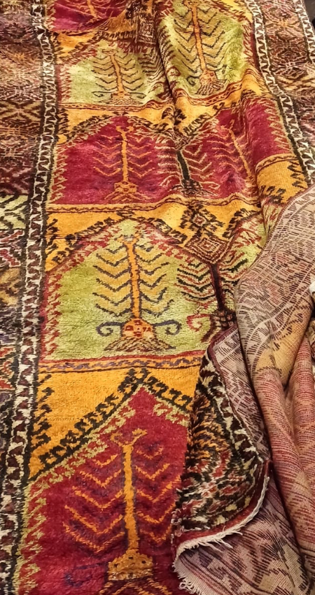 Our rugs are vintage or antique and may show signs of age—fading, wear, or color shifts. These are not flaws but part of the character that makes each rug unique. We provide detailed photos and videos to help you fall in love with the piece and so you know what your investing in.