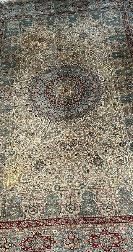 HISTORY: Finest quality Antique Carpet. Exquisite Design. Very Special. Hand Made in Hereke, Turkey. 80 or 90 years old. Will likely increase in value.