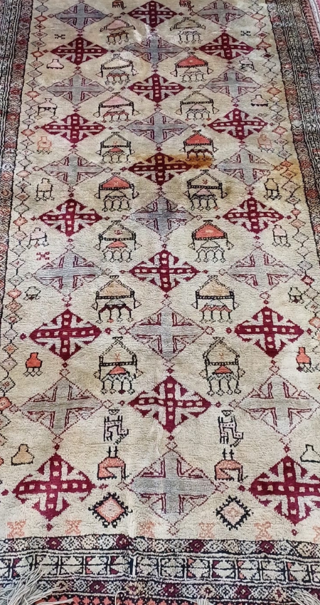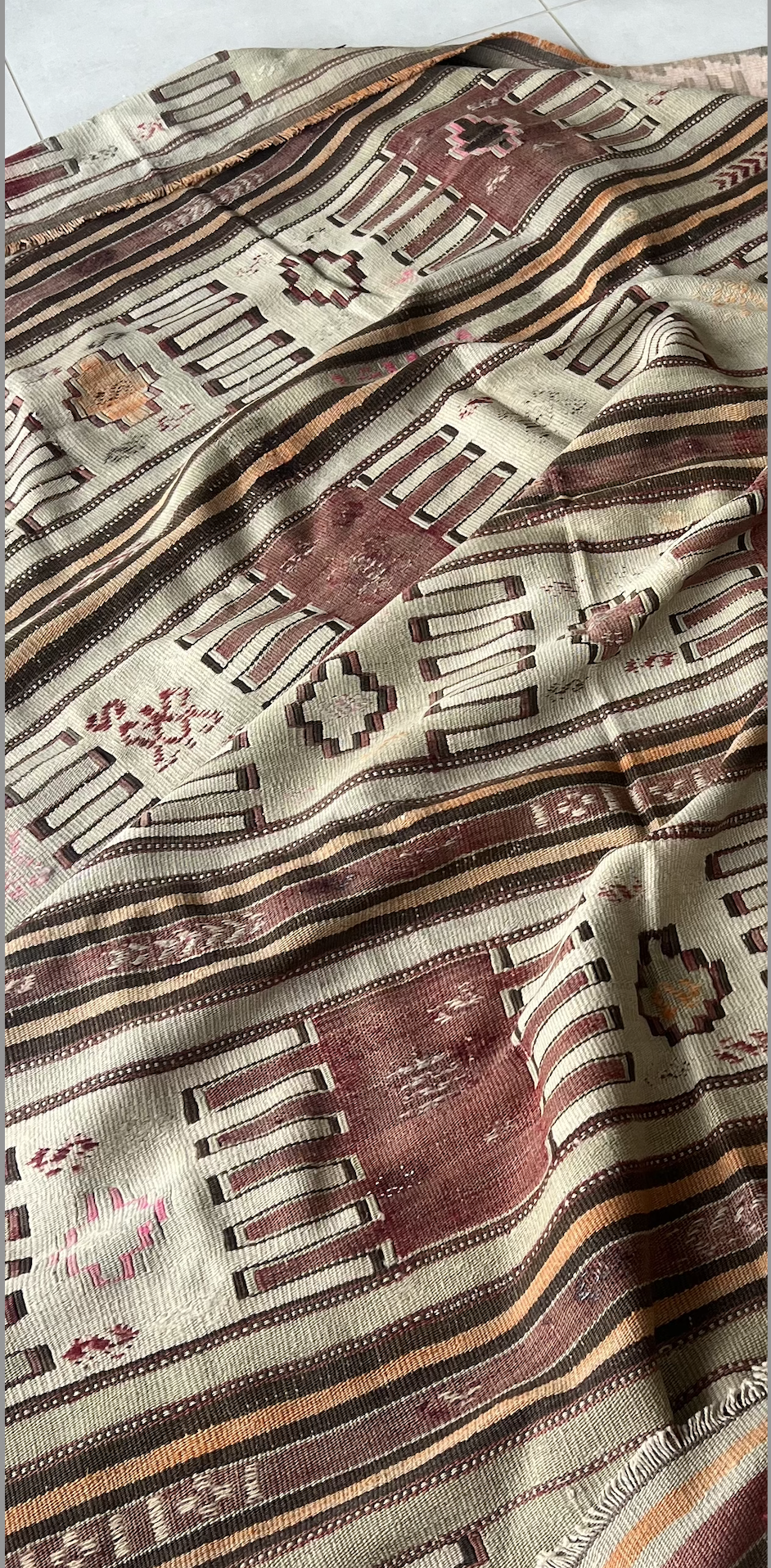 These are old, used rugs authentically sourced in villages—subtle fading, timeworn details and initial musty smells (will pass after airing), are part of their character and story.